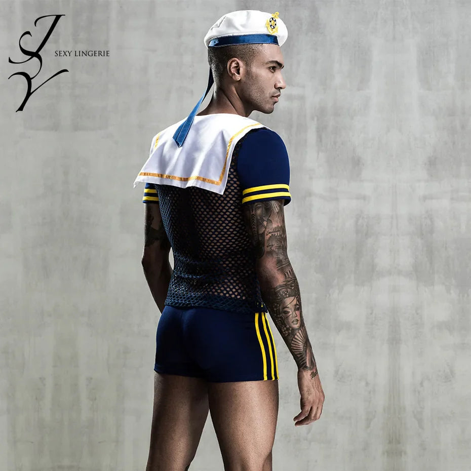 Alluring Seaman Cosplay Lingerie Set Fishnet Top & Pants